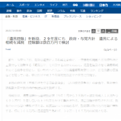 遺言による相続ですと、相続税が減税される方向になるそうです。 「「遺言控除」を新設、29年度にも 政府・与党方針 遺言による相続を減税 控除額は数百万円で検討」 (産経ニュース 2015.7.8 05:00) 有効な遺言 […]
