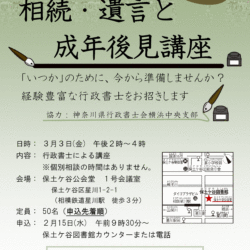 保土ヶ谷図書館セミナー「知っておきたい 相続・遺言と 成年後見講座」
